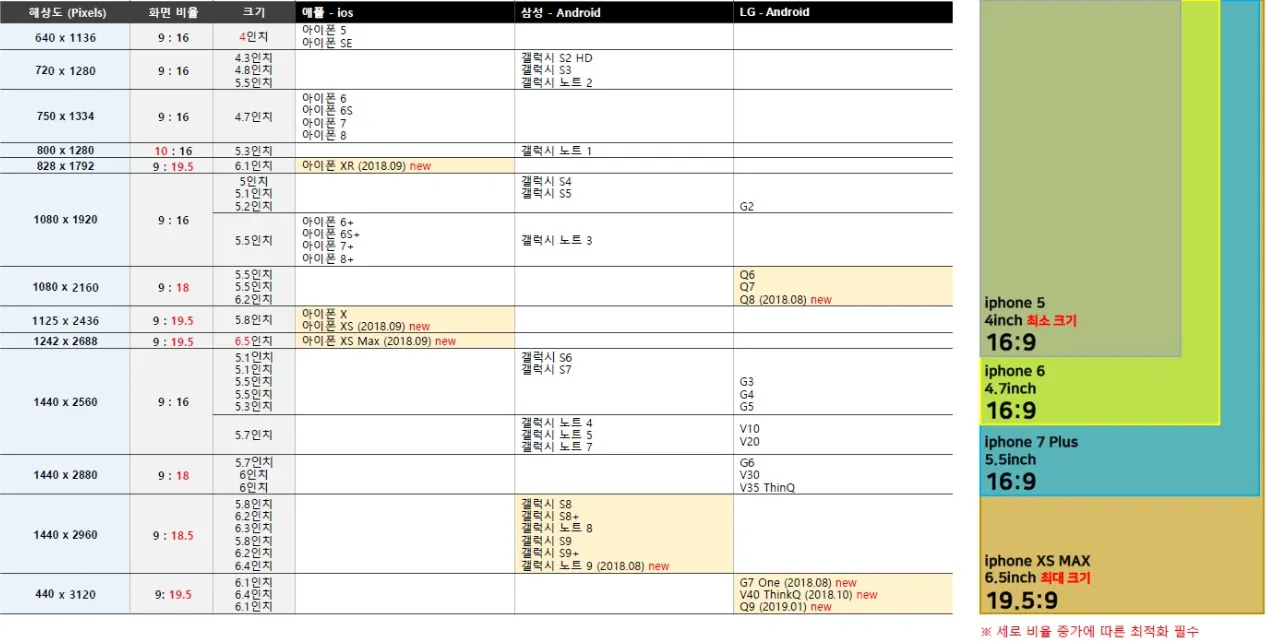 해상도 정의 moblie기준(안드로이드 및 아이폰)