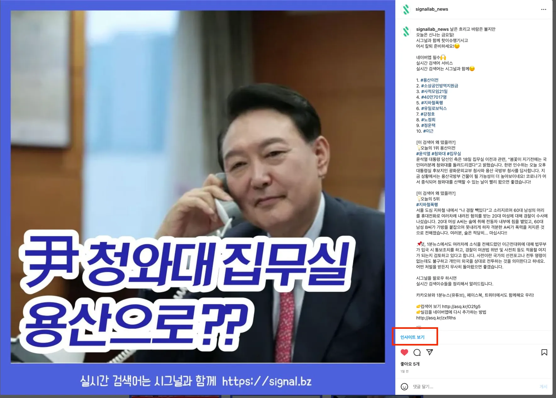 실시간 검색어 내용 확인