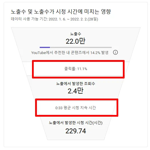 사용자가 썸네일 또는 제목만을 보고 유튜브 영상을 클릭하는 비율