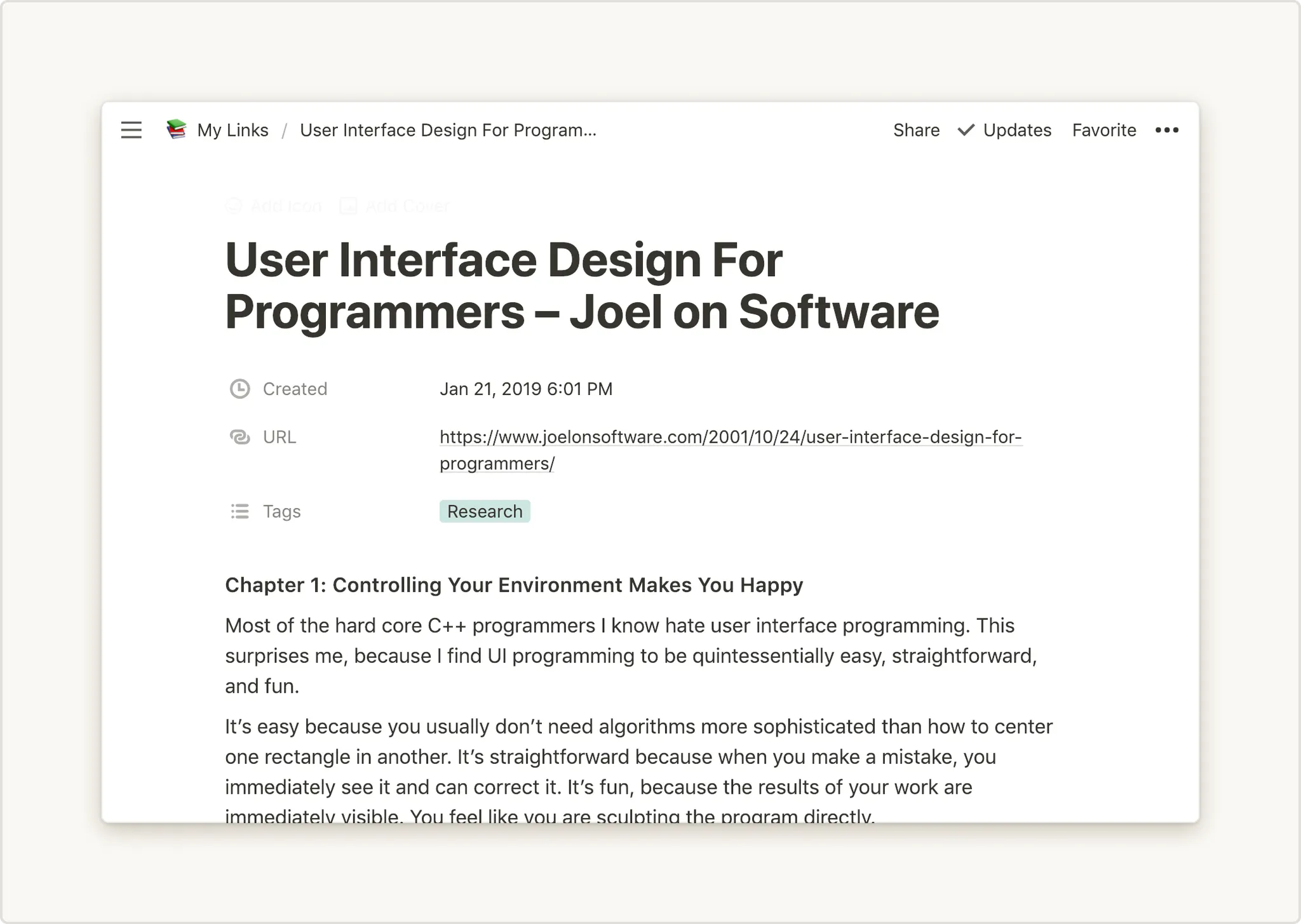 나중에 Notion에서 읽을 기사를 클리핑한다고 가정해 봅시다.