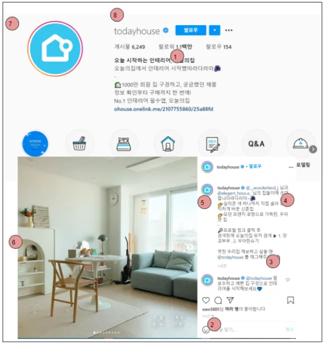 인스타그램 페이지 화면에서 크롤링 하여 가지고 올 데이터를 정리하였으며 해당 데이터에 대한 파라미터 정의