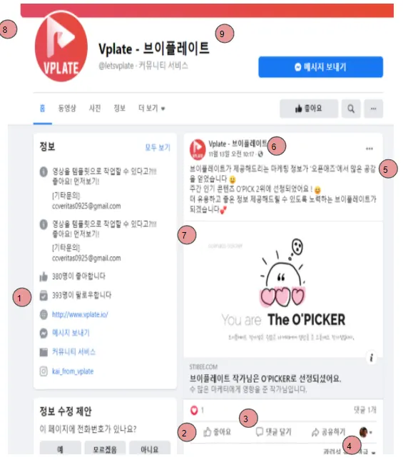 페이스북 : 평균콘텐츠점수, 평균 좋아요, 평균 댓글, 평균 공유, 평균 콘텐츠 등록