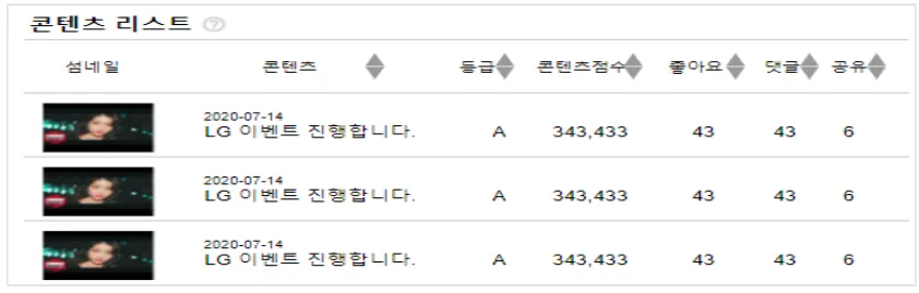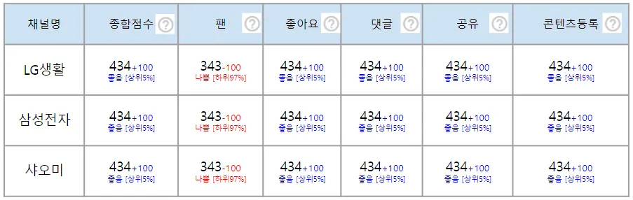 유튜브 : 좋아요, 등급, 콘텐츠점수, 댓글, 조회수
