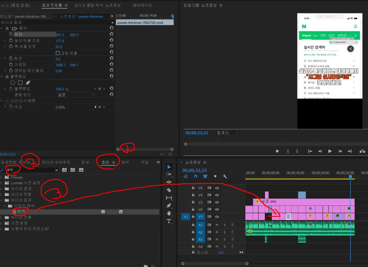 영상소스 ⇒ “영상효과_비” 영상드래그
