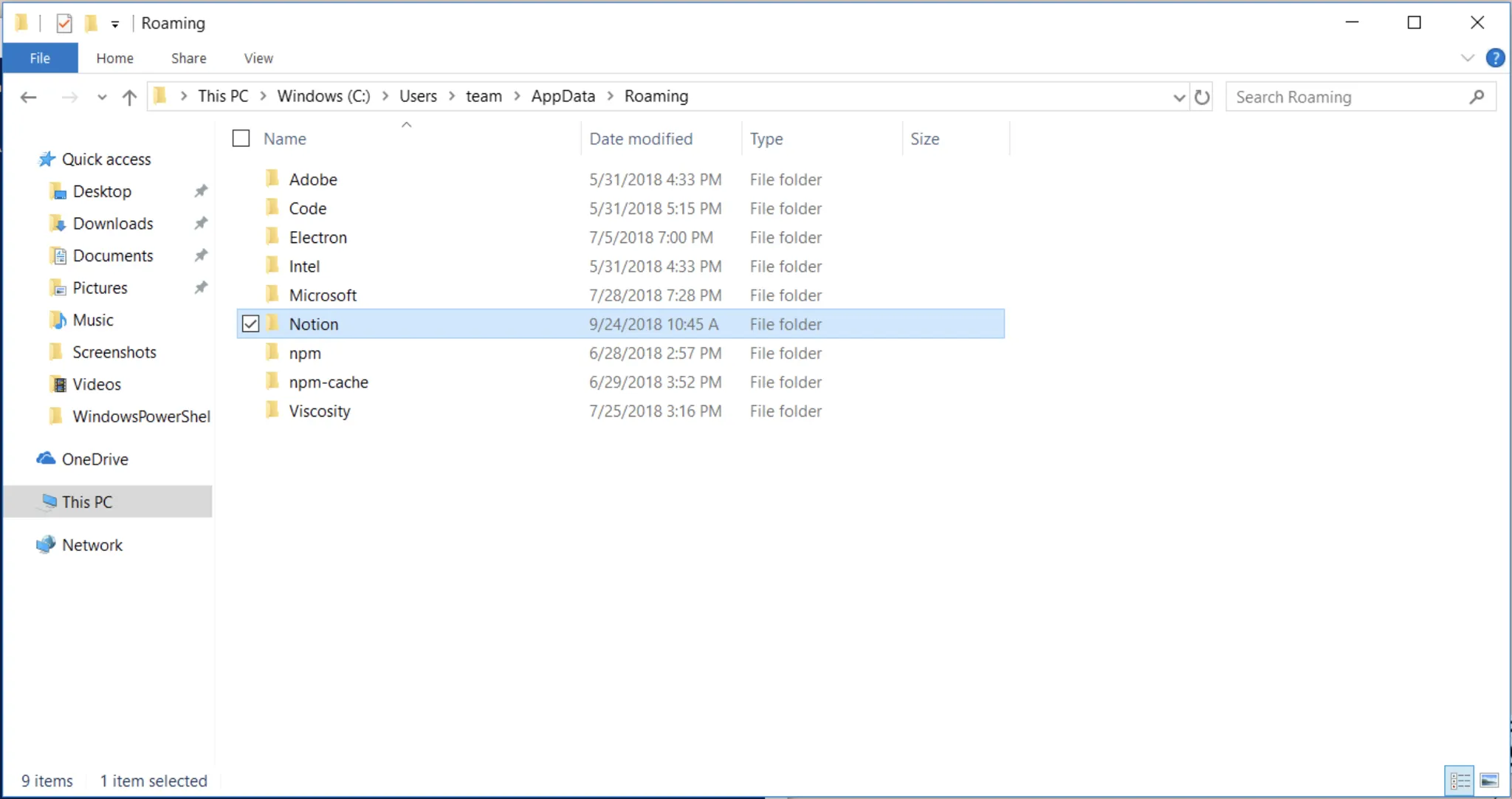 아래와 같이 Notion 폴더를 삭제합니다.