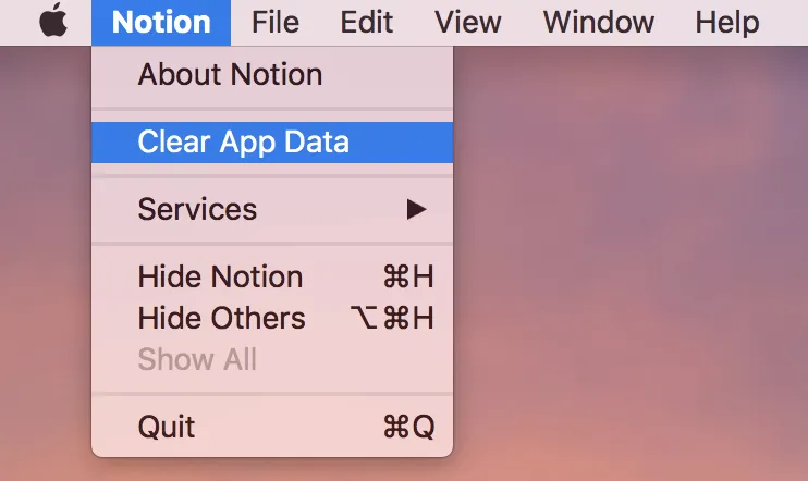 Notion이 켜져 있는 상태에서 왼쪽 상단 바의 "Notion" 을 클릭합니다.