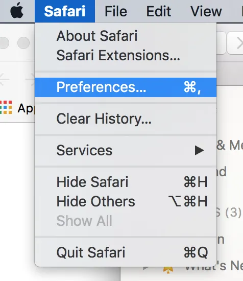 기본 메뉴에서 설정(Preferences)을 선택합니다.