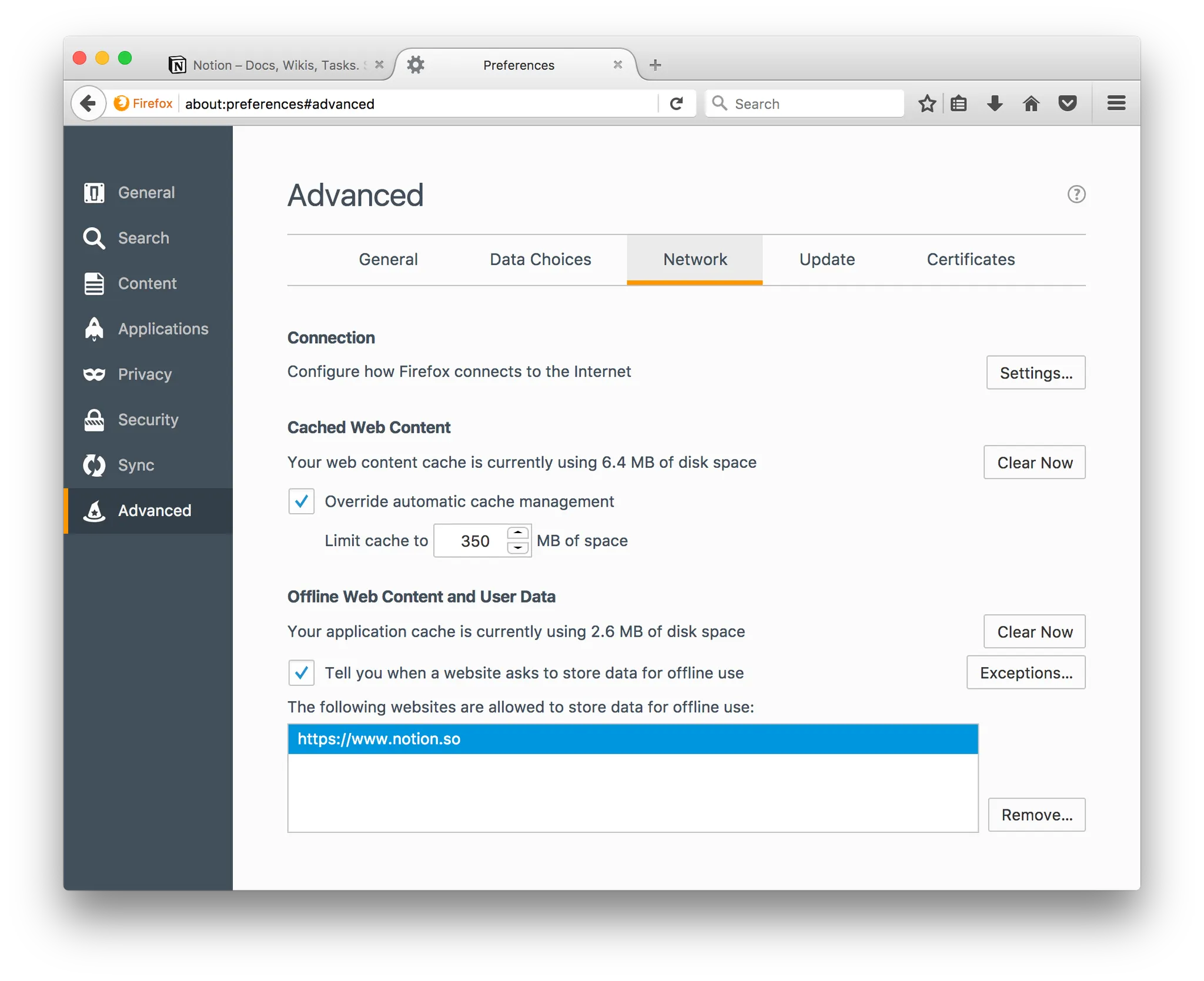 왼쪽의 'Advanced'탭의 'Network' 를 선택해 'Clear Now' 버튼을 눌러주세요.